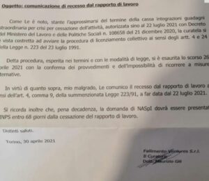 Lettera al curatore fallimentare