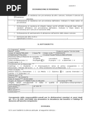Cambio Residenza Online: Come si Fa, Documenti e Tempi Andiamo quindi a riassumere brevemente tempi, costi e modalità del cambio di residenza online: Tramite il portale web dell' Anagrafe Nazionale Popolazione Residente. Oltre alle informazioni anagrafiche, potresti dover allegare documenti che attestano la tua residenza. Di norma pochi giorni (generalmente due). Fac Simile Compilazione Modulo Cambio Residenza-Indirizzo | PDF - Scribd Dichiarazione di cambiamento di abitazione nellambito dello stesso comune Iscrizione per altro motivo (specificare il motivo ) IL SOTTOSCRITTO 1) Cognome* ROSSI Nome* LUIGI Data di nascita *10/04/1948 Luogo di nascita*MILANO Sesso*M Stato civile ** CONIUGATO Cittadinanza*ITALIANA Codice Fiscale*RSSLGU48D10F205E