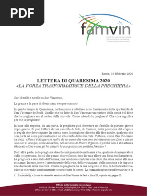 (Italiano) Lettera Di Quaresima de 2020 - Famiglia Vincenziana ...